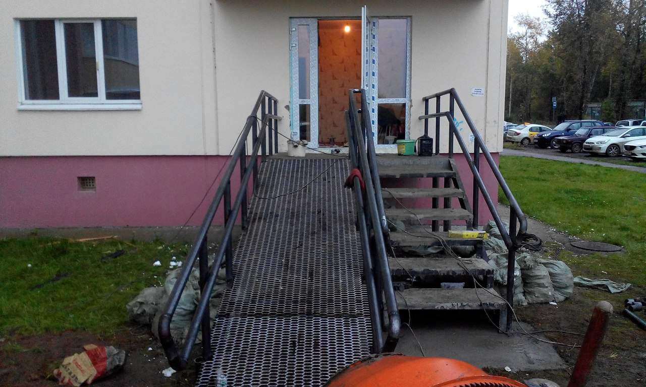 Все больше и больше квартир на первых этажах переводят из жилых в нежилые помещения и организовывают в них магазины, офисы, склады. По согласованию с администрацией в нежилом помещений вход должен осуществляться не с лестничной клетки а с улицы. Для организации входа в квартиру и необходимы входные группы. Это может быть просто лестница (несколько ступеней) или просто навес из поликарбоната — вариантов решения данного вопроса — масса. Но мы монтируем входные группы не только в квартиры, но и в офисные здания, торговые помещения (Магнит, Пятерочка), организация входных групп, навесов в Дома.